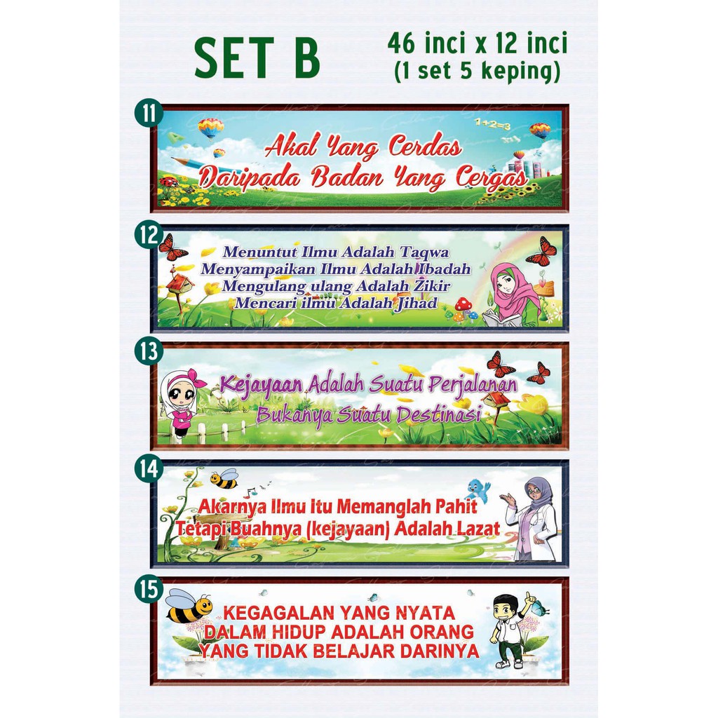 Banner Wallpaper Set Kecerian Kelas Alat Bantu Mengajar Mural Tangga Bahasa Melayu Set B